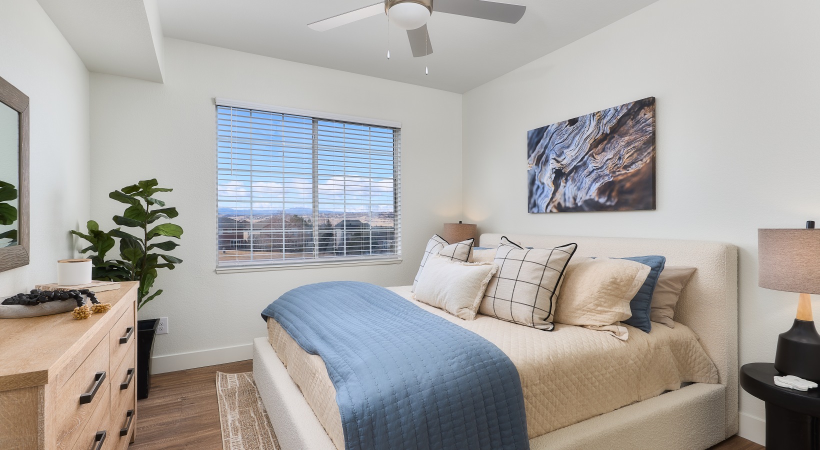 • a bedroom with a bed and a dresser
